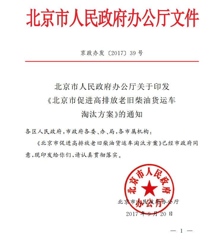 北京市人民政府办公厅关于印发《北京市促进高排放老旧柴油货运车淘汰方案》的通知